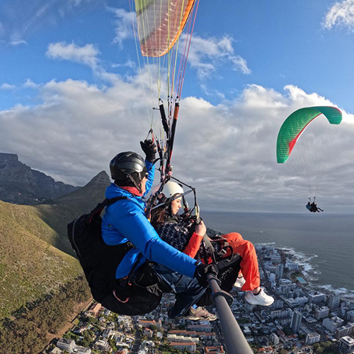 Instructional tandem paragliding flights from Signal Hill and Lion’s Head, operated by licensed professionals.